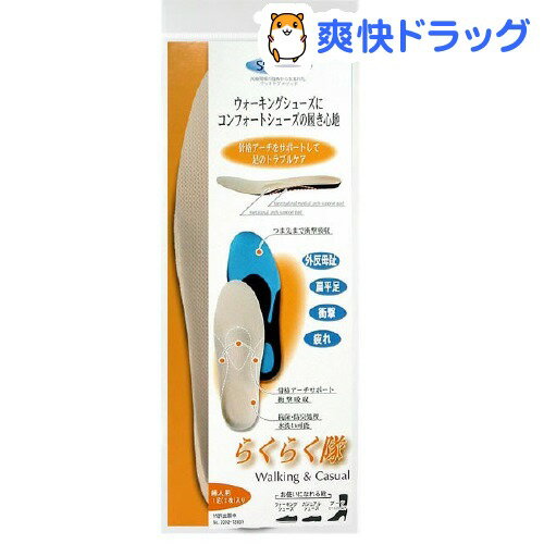 【P5倍】らくらく隊 ウォーキング&カジュアル M(23?23.5cm)※要エントリー 10/3 23:59迄★税込3150円以上で送料無料★[らくらく隊]価格: 1,449円レビュー評価: 5.0 レビュー数:1 【ブランド】らくらく隊【発売元、製造元、輸入元又は販売元】村井【らくらく隊 ウォーキング&カジュアルの商品詳細】●ウォーキングシューズにコンフォートシューズの履き心地●骨格からケア、足を快適にサポート「足の疲れ」「かかとのつらいトラブル」には、足裏と接するインソールで、「足骨格のアーチ構造を正しく保つこと」と、「適度な衝撃吸収性を保つこと」が有効です。本品はこのアーチ構造を正しくサポートする「アーチサポートパッド」を3ヶ所に配置しました。外反母趾、偏平足といったトラブルの原因ともなるアーチ構造の崩れをケアし、足を美しく快適にサポートします。●歩行の衝撃を緩和させます●水洗いが出来ます●足と靴が |